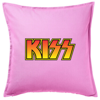 KISS, Μαξιλάρι καναπέ ΡΟΖ 100% βαμβάκι, περιέχεται το γέμισμα (50x50cm)