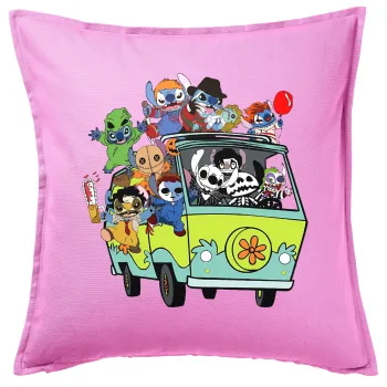 Stitch Halloween scooby car, Μαξιλάρι καναπέ ΡΟΖ 100% βαμβάκι, περιέχεται το γέμισμα (50x50cm)