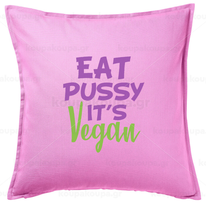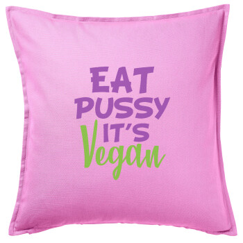 EAT pussy it's vegan, Μαξιλάρι καναπέ ΡΟΖ 100% βαμβάκι, περιέχεται το γέμισμα (50x50cm)