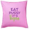 EAT pussy it's vegan, Μαξιλάρι καναπέ ΡΟΖ 100% βαμβάκι, περιέχεται το γέμισμα (50x50cm)