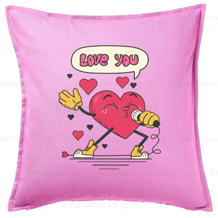 LOVE YOU SINGER!!!, Μαξιλάρι καναπέ ΡΟΖ 100% βαμβάκι, περιέχεται το γέμισμα (50x50cm)
