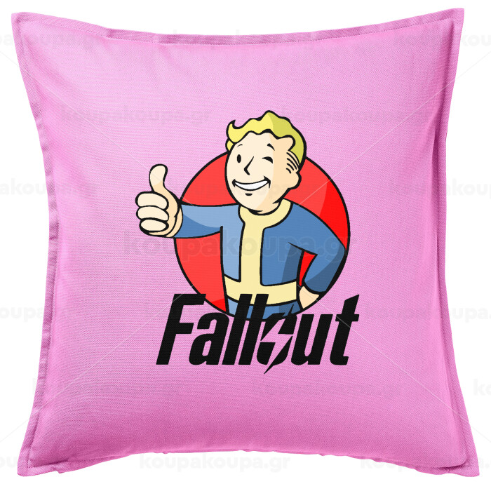 Fallout Vault Boy, Μαξιλάρι καναπέ ΡΟΖ 100% βαμβάκι, περιέχεται το γέμισμα (50x50cm)