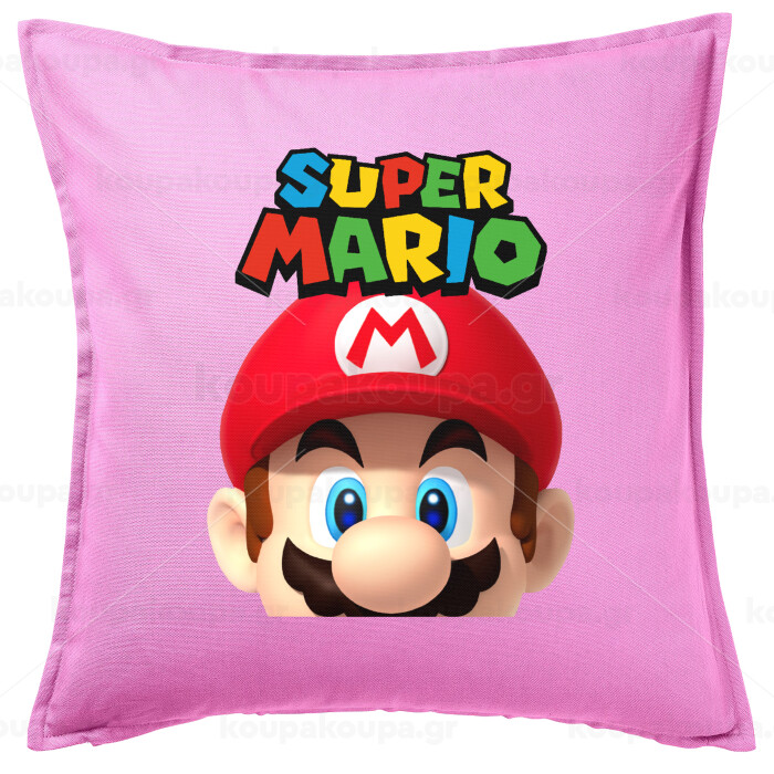 Super mario, Μαξιλάρι καναπέ ΡΟΖ 100% βαμβάκι, περιέχεται το γέμισμα (50x50cm)