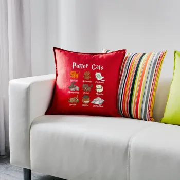 Potter Cats, Μαξιλάρι καναπέ Κόκκινο 100% βαμβάκι, περιέχεται το γέμισμα (50x50cm)
