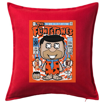 The flintstones, Μαξιλάρι καναπέ Κόκκινο 100% βαμβάκι, περιέχεται το γέμισμα (50x50cm)