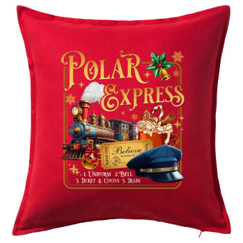 The Polar Express, Μαξιλάρι καναπέ Κόκκινο 100% βαμβάκι, περιέχεται το γέμισμα (50x50cm)