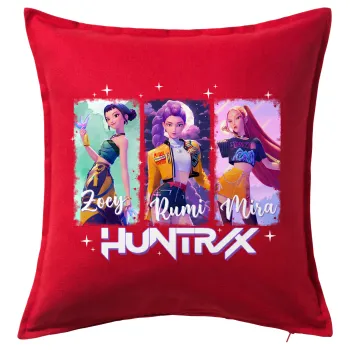 HUNTR/X K-pop girl group, Μαξιλάρι καναπέ Κόκκινο 100% βαμβάκι, περιέχεται το γέμισμα (50x50cm)