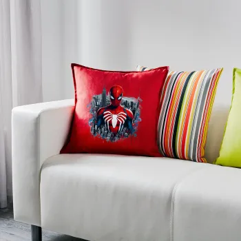 Spiderman City, Μαξιλάρι καναπέ Κόκκινο 100% βαμβάκι, περιέχεται το γέμισμα (50x50cm)