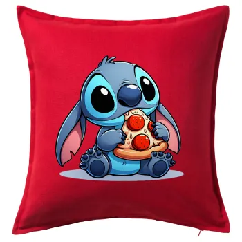 Stitch Pizza, Μαξιλάρι καναπέ Κόκκινο 100% βαμβάκι, περιέχεται το γέμισμα (50x50cm)