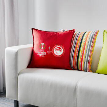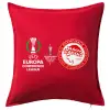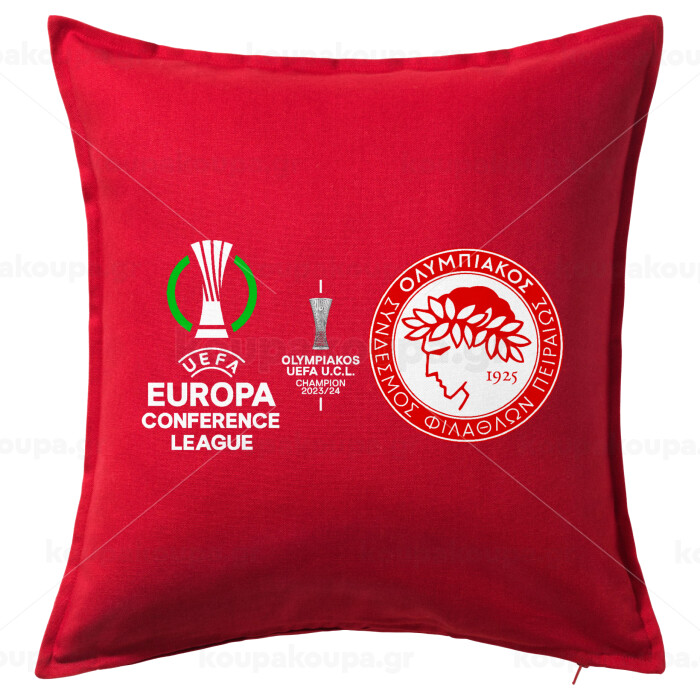 Ολυμπιακός νικητής UEFA Europa Conference League Champion 2023/24, Μαξιλάρι καναπέ Κόκκινο 100% βαμβάκι, περιέχεται το γέμισμα (50x50cm)