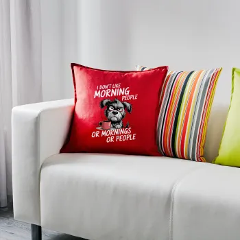 I Don't Like Morning People..., Μαξιλάρι καναπέ Κόκκινο 100% βαμβάκι, περιέχεται το γέμισμα (50x50cm)