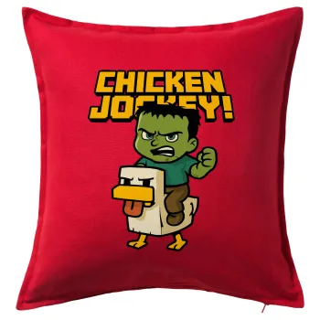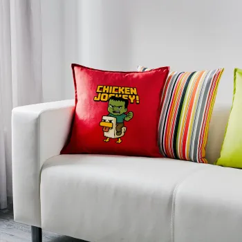 Chicken Jockey, Μαξιλάρι καναπέ Κόκκινο 100% βαμβάκι, περιέχεται το γέμισμα (50x50cm)