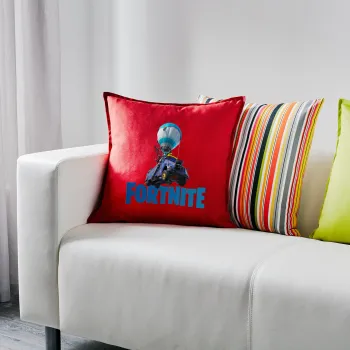Fortnite Bus, Μαξιλάρι καναπέ Κόκκινο 100% βαμβάκι, περιέχεται το γέμισμα (50x50cm)