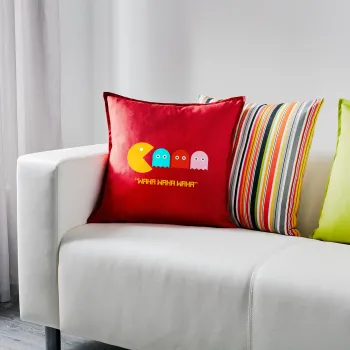 Pacman waka waka waka, Μαξιλάρι καναπέ Κόκκινο 100% βαμβάκι, περιέχεται το γέμισμα (50x50cm)