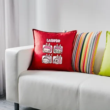 Labubu pink, Μαξιλάρι καναπέ Κόκκινο 100% βαμβάκι, περιέχεται το γέμισμα (50x50cm)