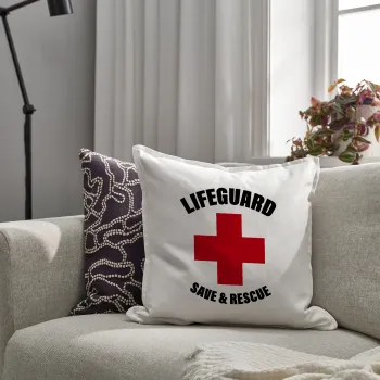 Lifeguard Save & Rescue, Μαξιλάρι καναπέ ΛΕΥΚΟ 100% βαμβάκι, περιέχεται το γέμισμα (50x50cm)