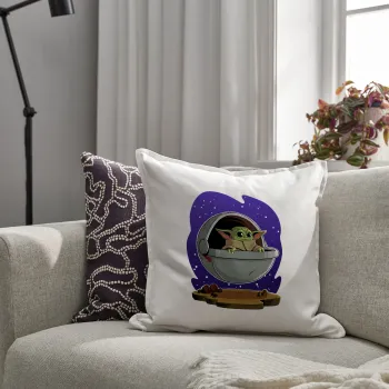 Baby Yoda mandalorian, Μαξιλάρι καναπέ ΛΕΥΚΟ 100% βαμβάκι, περιέχεται το γέμισμα (50x50cm)