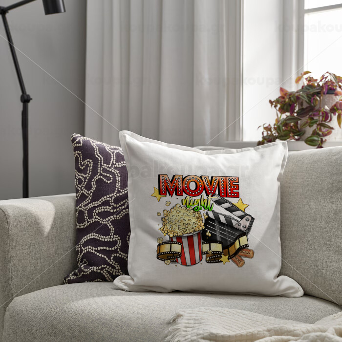 Movie night, Μαξιλάρι καναπέ ΛΕΥΚΟ 100% βαμβάκι, περιέχεται το γέμισμα (50x50cm)