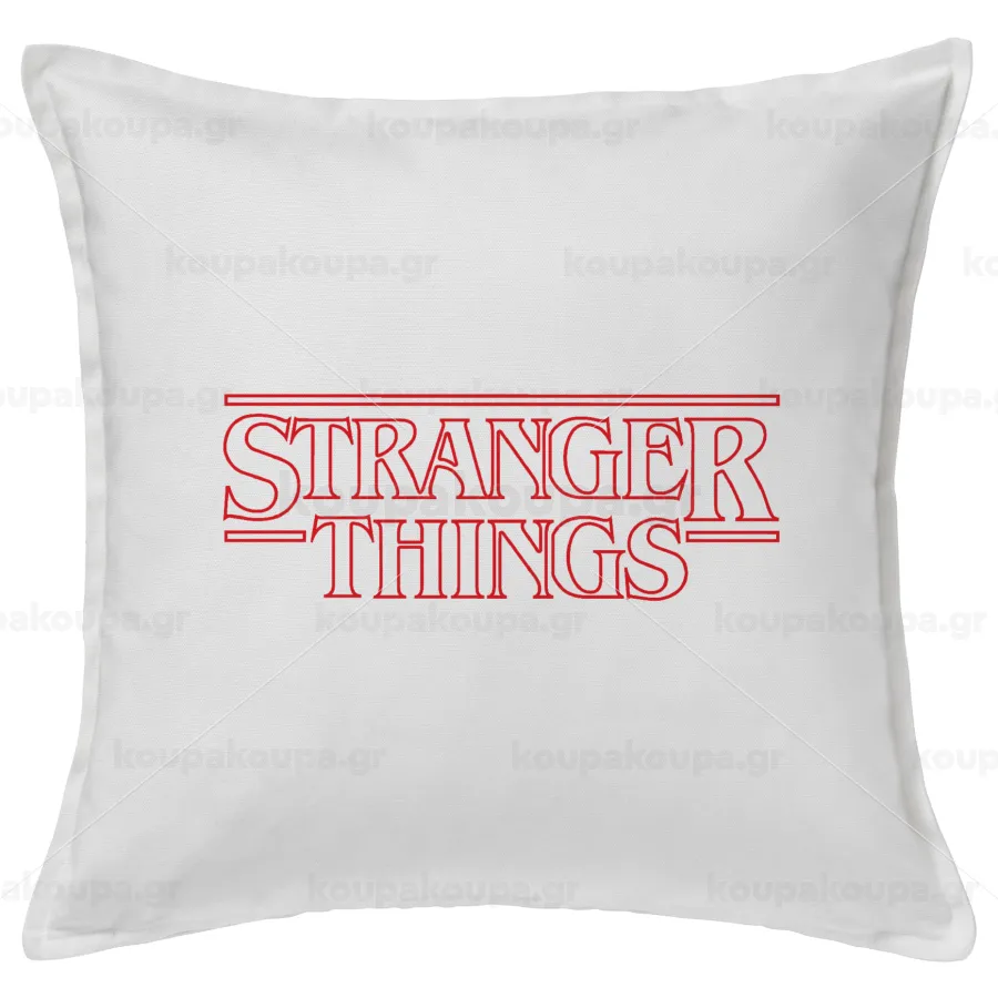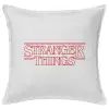 Stranger Things Logo, Μαξιλάρι καναπέ ΛΕΥΚΟ 100% βαμβάκι, περιέχεται το γέμισμα (50x50cm)
