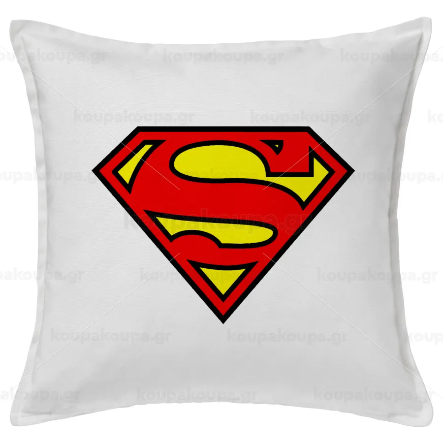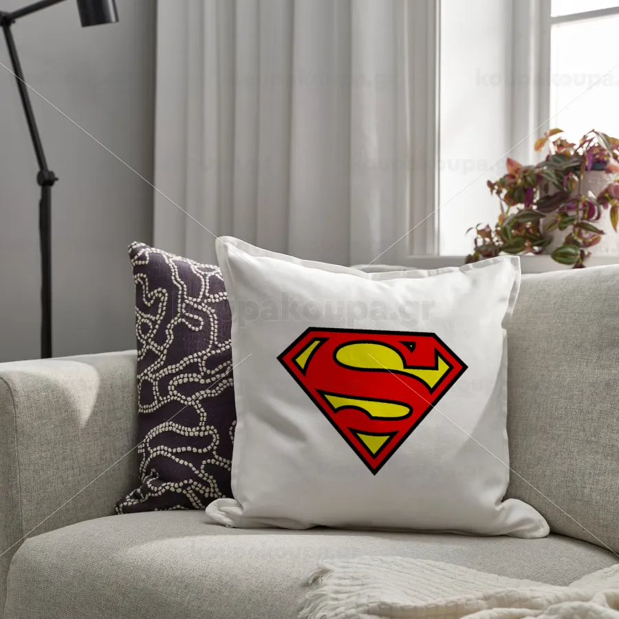 Superman vintage, Μαξιλάρι καναπέ ΛΕΥΚΟ 100% βαμβάκι, περιέχεται το γέμισμα (50x50cm)