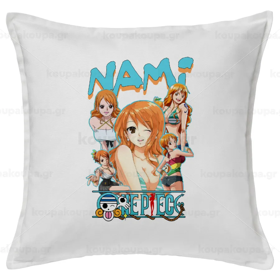 Nami One Piece, Μαξιλάρι καναπέ ΛΕΥΚΟ 100% βαμβάκι, περιέχεται το γέμισμα (50x50cm)