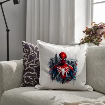 Spiderman City, Μαξιλάρι καναπέ ΛΕΥΚΟ 100% βαμβάκι, περιέχεται το γέμισμα (50x50cm)