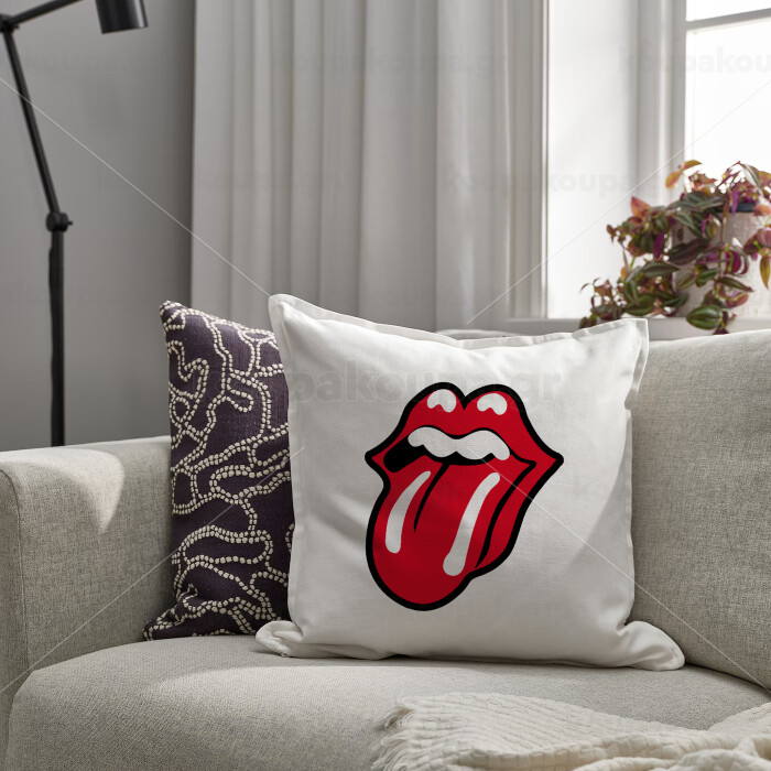 Rolling Stones Kiss, Μαξιλάρι καναπέ ΛΕΥΚΟ 100% βαμβάκι, περιέχεται το γέμισμα (50x50cm)
