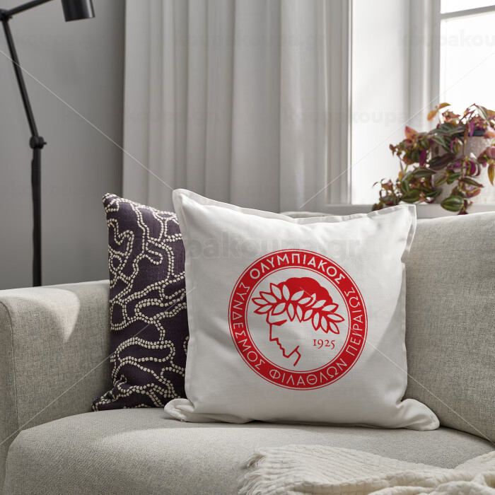 Ολυμπιακός, Μαξιλάρι καναπέ ΛΕΥΚΟ 100% βαμβάκι, περιέχεται το γέμισμα (50x50cm)