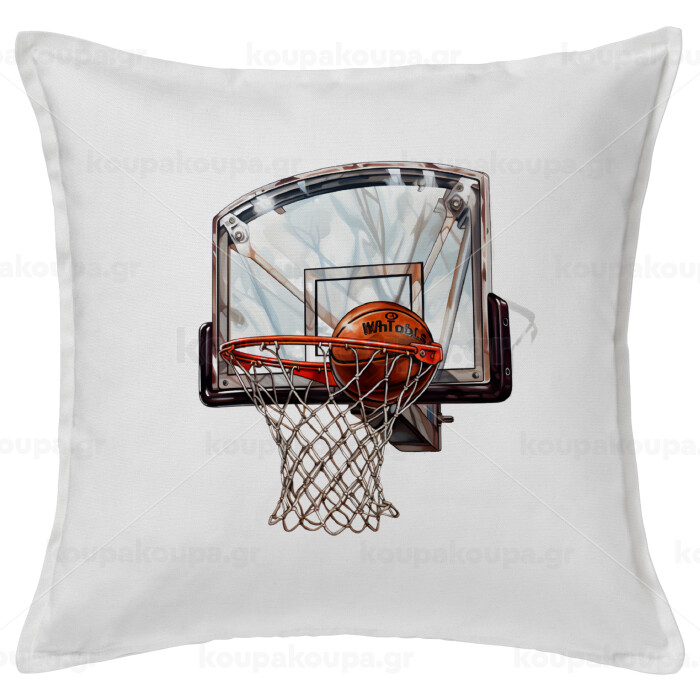 Basketball, Μαξιλάρι καναπέ ΛΕΥΚΟ 100% βαμβάκι, περιέχεται το γέμισμα (50x50cm)
