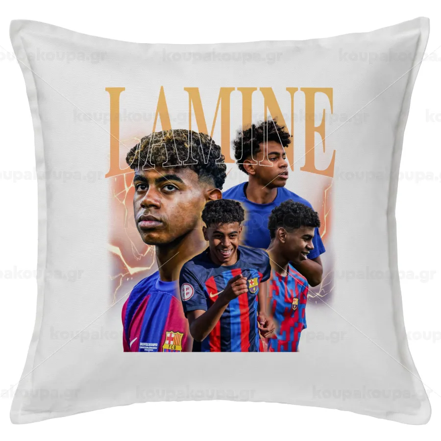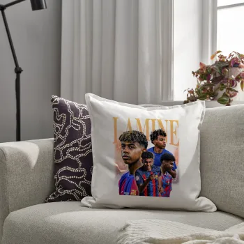 lamine yamal FCB, Μαξιλάρι καναπέ ΛΕΥΚΟ 100% βαμβάκι, περιέχεται το γέμισμα (50x50cm)