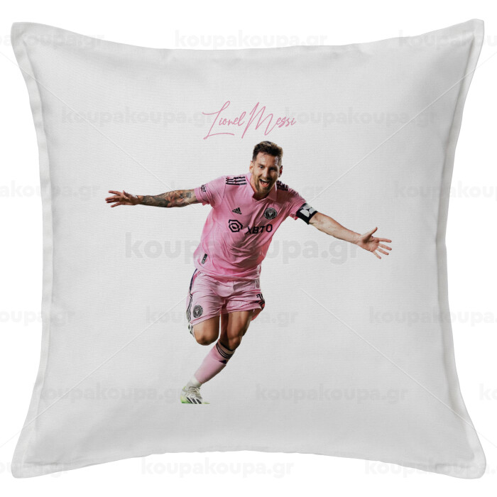 Lionel Messi inter miami jersey, Μαξιλάρι καναπέ ΛΕΥΚΟ 100% βαμβάκι, περιέχεται το γέμισμα (50x50cm)