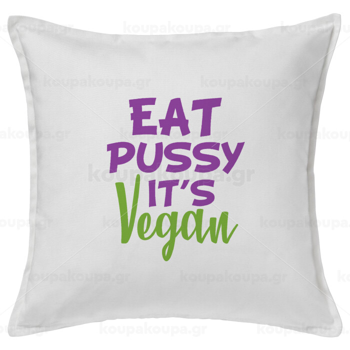 EAT pussy it's vegan, Μαξιλάρι καναπέ ΛΕΥΚΟ 100% βαμβάκι, περιέχεται το γέμισμα (50x50cm)