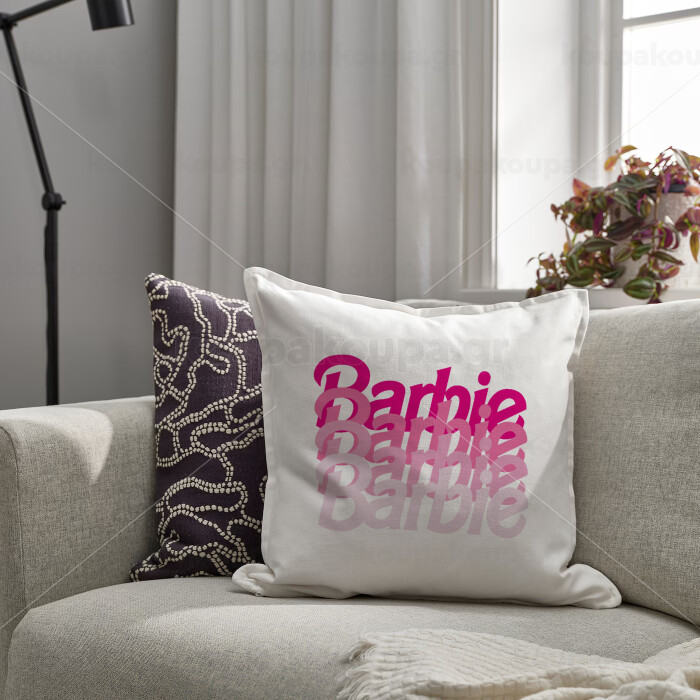 Barbie repeat, Μαξιλάρι καναπέ ΛΕΥΚΟ 100% βαμβάκι, περιέχεται το γέμισμα (50x50cm)