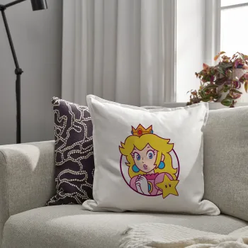 Princess Peach, Μαξιλάρι καναπέ ΛΕΥΚΟ 100% βαμβάκι, περιέχεται το γέμισμα (50x50cm)