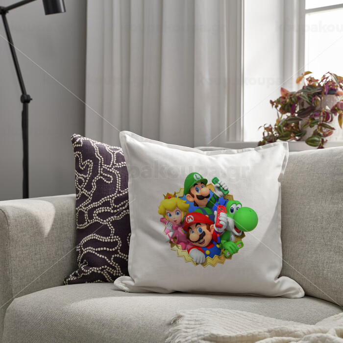 Super mario and Friends, Μαξιλάρι καναπέ ΛΕΥΚΟ 100% βαμβάκι, περιέχεται το γέμισμα (50x50cm)