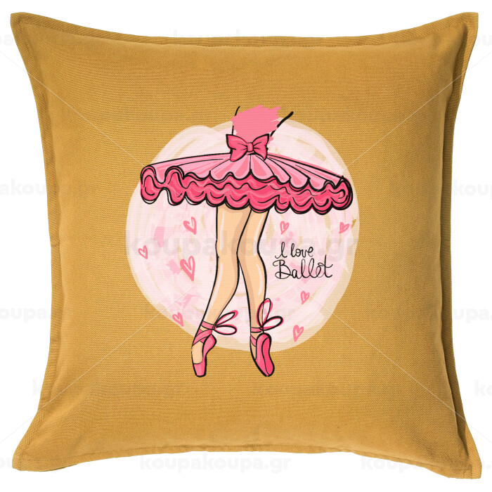 I Love Ballet, Μαξιλάρι καναπέ Κίτρινο 100% βαμβάκι, περιέχεται το γέμισμα (50x50cm)
