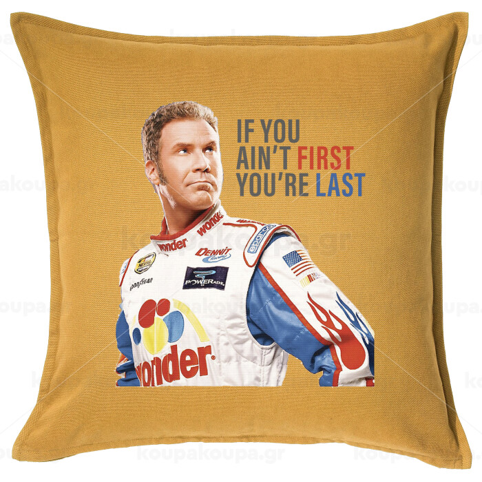 If You Ain't First You're Last Ricky Bobby, Talladega Nights, Μαξιλάρι καναπέ Κίτρινο 100% βαμβάκι, περιέχεται το γέμισμα (50x50cm)