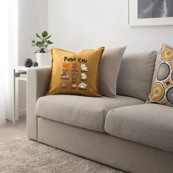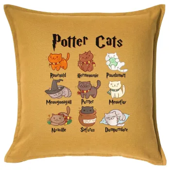Potter Cats, Μαξιλάρι καναπέ Κίτρινο 100% βαμβάκι, περιέχεται το γέμισμα (50x50cm)
