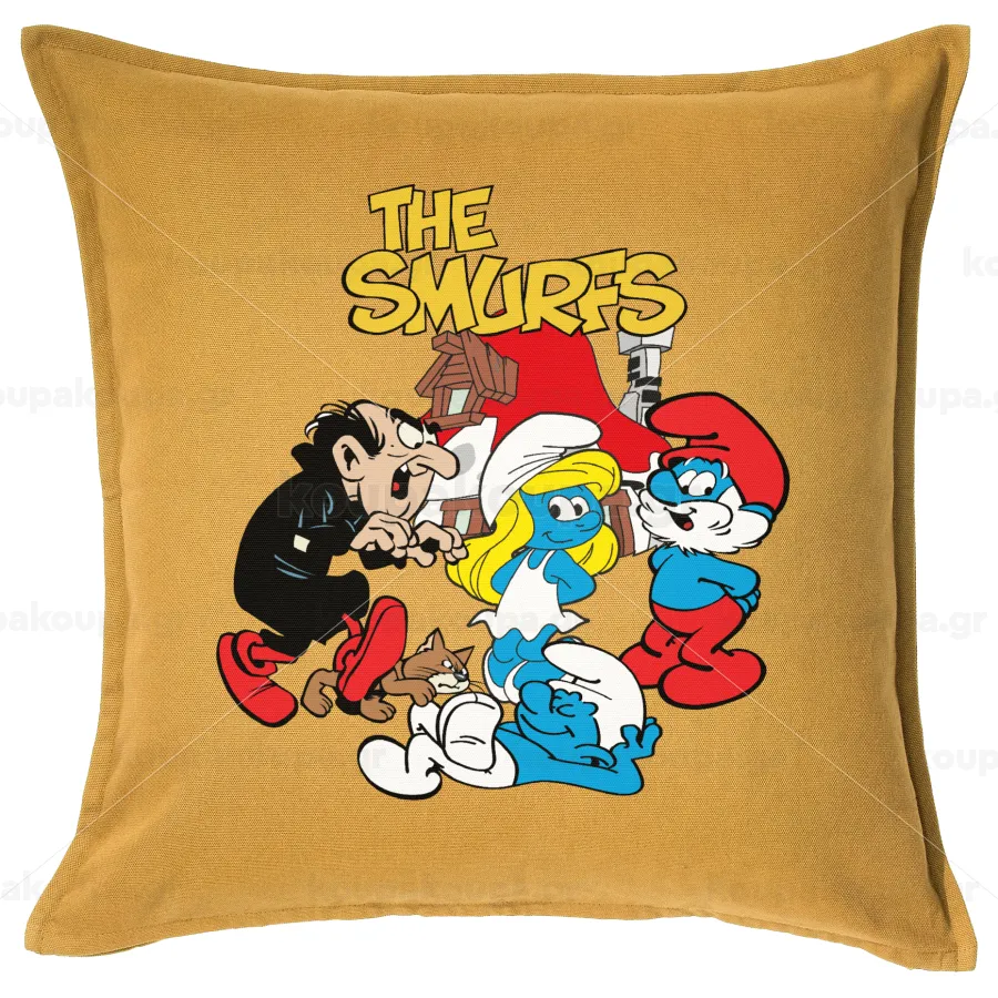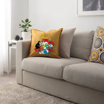 Τα στρουμφάκια, Μαξιλάρι καναπέ Κίτρινο 100% βαμβάκι, περιέχεται το γέμισμα (50x50cm)