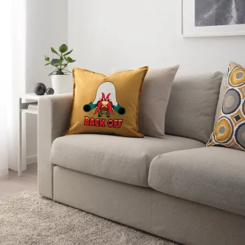 Yosemite Sam Back OFF, Μαξιλάρι καναπέ Κίτρινο 100% βαμβάκι, περιέχεται το γέμισμα (50x50cm)