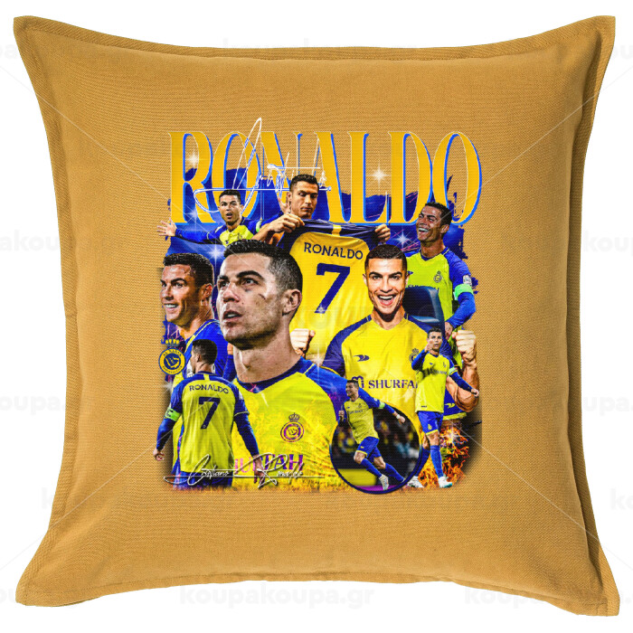 Cristiano Ronaldo Al Nassr, Μαξιλάρι καναπέ Κίτρινο 100% βαμβάκι, περιέχεται το γέμισμα (50x50cm)