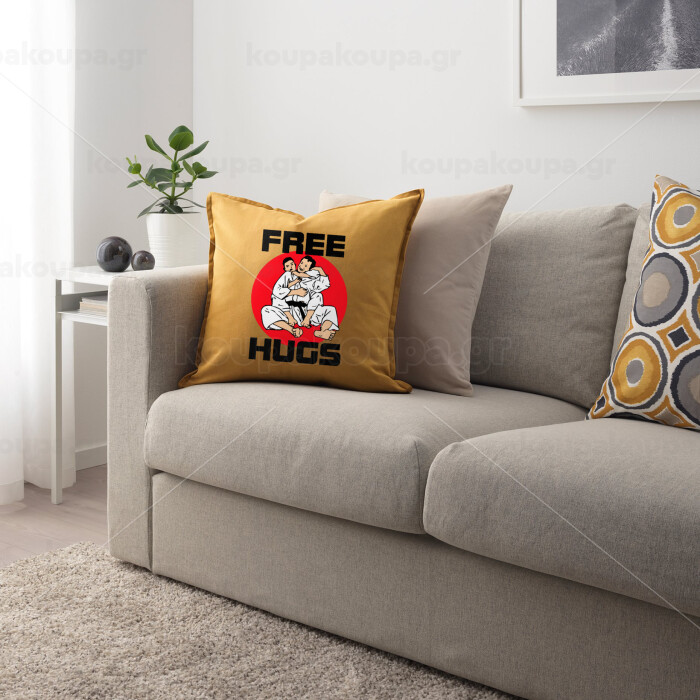 JUDO free hugs, Μαξιλάρι καναπέ Κίτρινο 100% βαμβάκι, περιέχεται το γέμισμα (50x50cm)