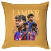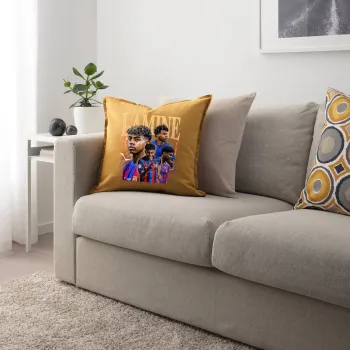 lamine yamal FCB, Μαξιλάρι καναπέ Κίτρινο 100% βαμβάκι, περιέχεται το γέμισμα (50x50cm)