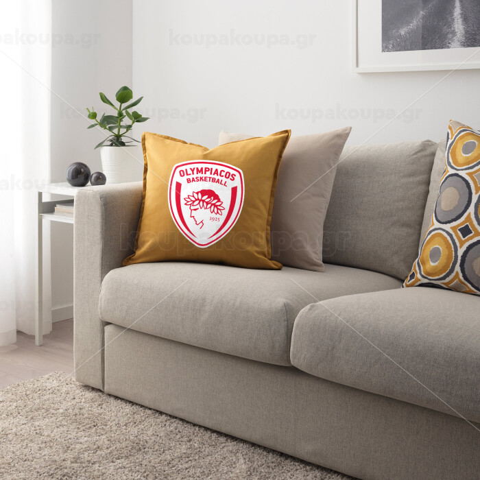 Olympiacos B.C., Μαξιλάρι καναπέ Κίτρινο 100% βαμβάκι, περιέχεται το γέμισμα (50x50cm)