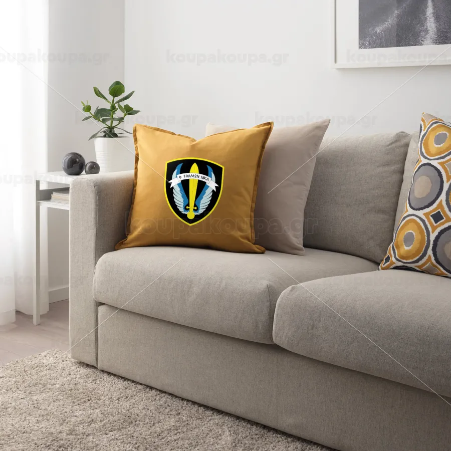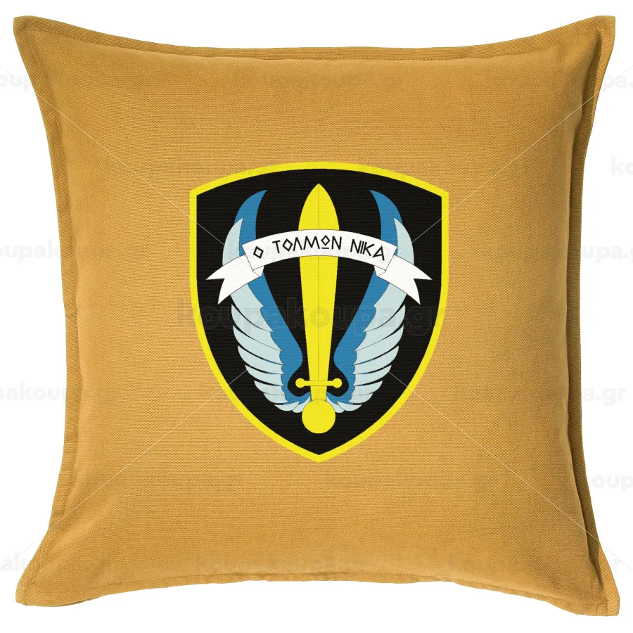 Έμβλημα Μονάδων Καταδρομών Ο Τολμων Νικα - Λοκ, Μαξιλάρι καναπέ Κίτρινο 100% βαμβάκι, περιέχεται το γέμισμα (50x50cm)