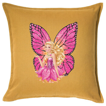 Barbie Νεράιδα, Μαξιλάρι καναπέ Κίτρινο 100% βαμβάκι, περιέχεται το γέμισμα (50x50cm)