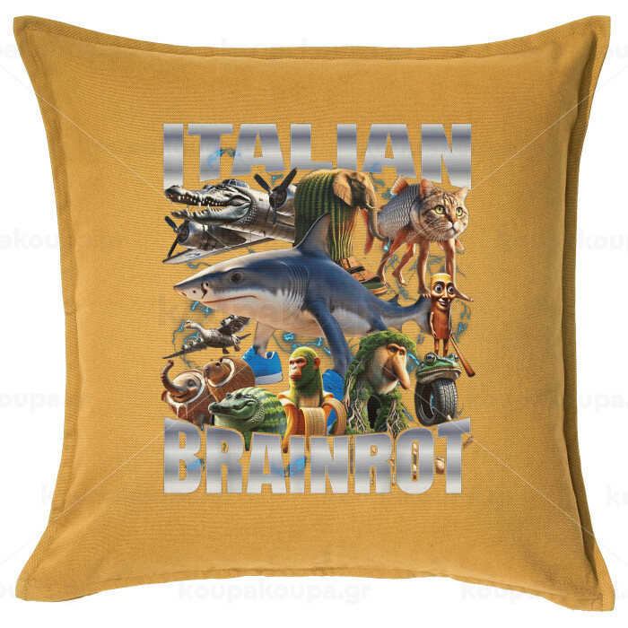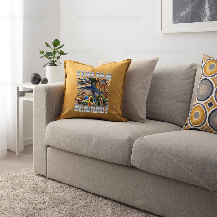 Italian Brainrot, Μαξιλάρι καναπέ Κίτρινο 100% βαμβάκι, περιέχεται το γέμισμα (50x50cm)
