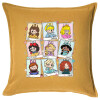 Labubu characters, Μαξιλάρι καναπέ Κίτρινο 100% βαμβάκι, περιέχεται το γέμισμα (50x50cm)