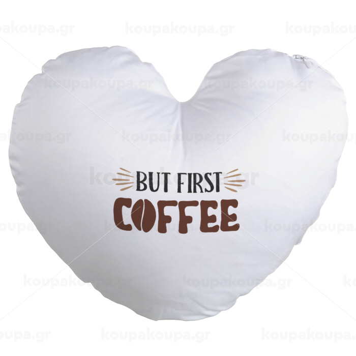 But first Coffee, Μαξιλάρι καναπέ καρδιά 40x40cm περιέχεται το γέμισμα