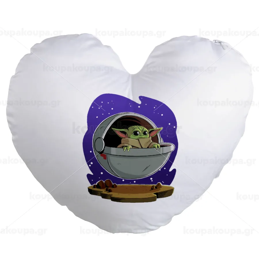 Baby Yoda mandalorian, Μαξιλάρι καναπέ καρδιά 40x40cm περιέχεται το γέμισμα
